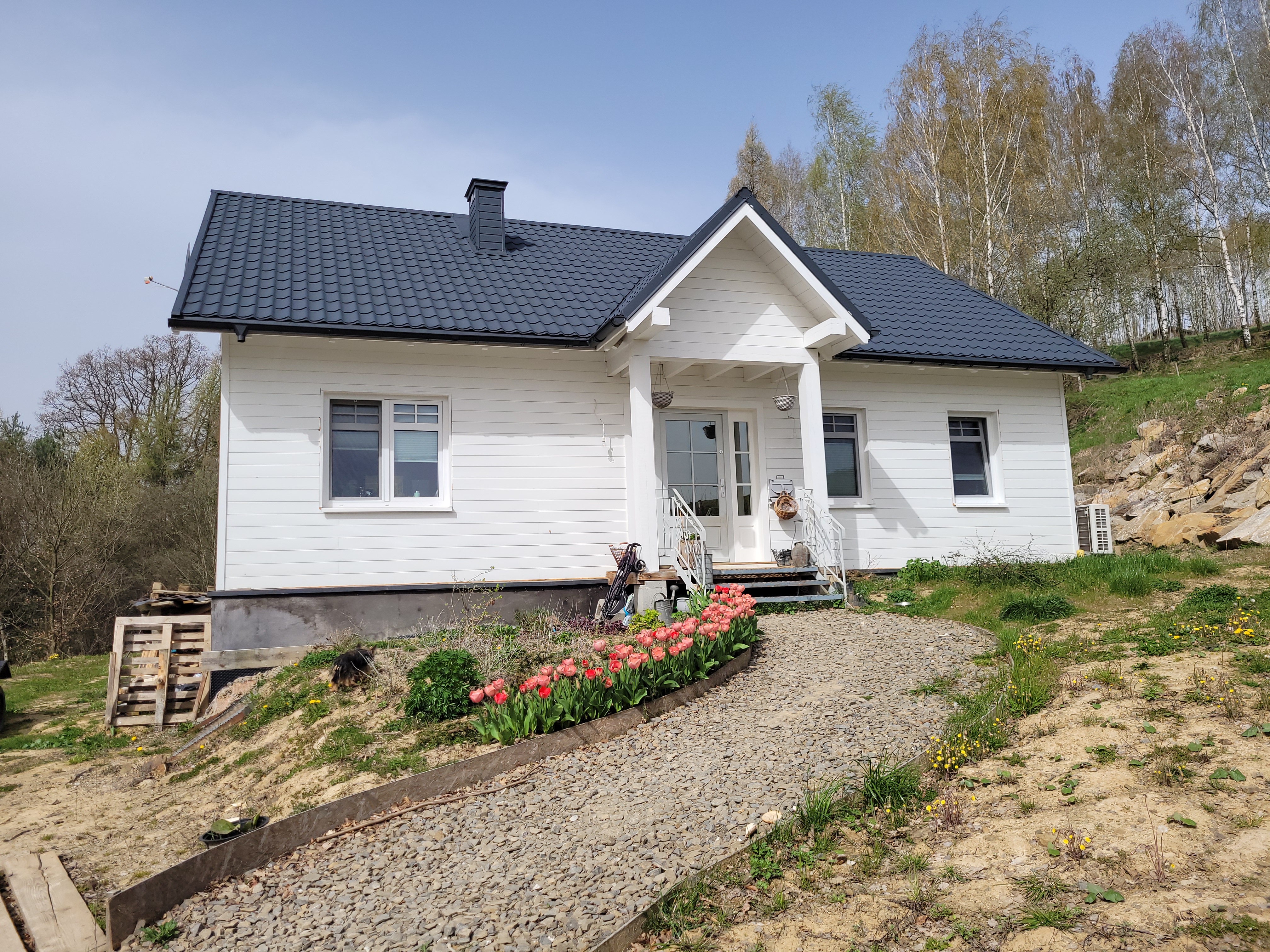 Dom w konstrukcji szkieletowej zaprojektowany w stylu skandynawskim, posadowiony na głębokich fundamentach w otoczeniu przepięknej przyrody. Można wyobrazić sobie, jak jego jasne drewno harmonijnie komponuje się z naturalnym otoczeniem, tworząc przytulną przestrzeń do wypoczynku i relaksu. Każdy element został starannie przemyślany, aby stworzyć niepowtarzalny klimat, w którym można odpocząć od zgiełku codzienności i delektować się bliskością natury. To miejsce, w którym funkcjonalność architektury łączy się z pięknem otaczającej przyrody, jest to dom, który na myśl przywodzi sielankę w przepięknym otoczeniu.
